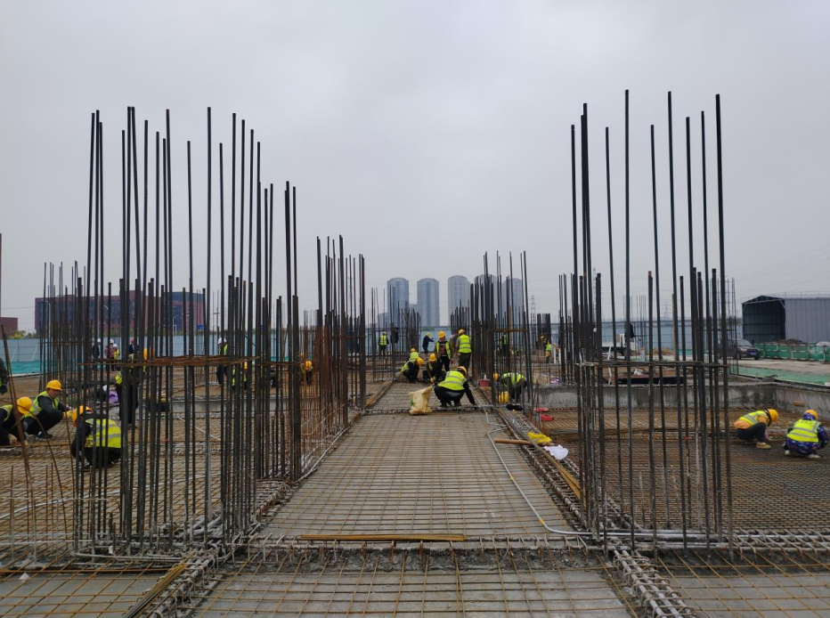 項(xiàng)目自開工以來,項(xiàng)目管理團(tuán)隊(duì)始終以“高標(biāo)準(zhǔn)、嚴(yán)要求、快推進(jìn)”為原則,科學(xué)統(tǒng)籌、精準(zhǔn)施策。在地基、基礎(chǔ)施工階段,項(xiàng)目團(tuán)隊(duì)多次組織技術(shù)交底會(huì),優(yōu)化施工組織設(shè)計(jì),針對(duì)基坑降水、土方開挖、鋼筋綁扎、混凝土澆筑等關(guān)鍵工序制定專項(xiàng)方案,確保施工安全與質(zhì)量雙保障。同時(shí),項(xiàng)目部積極協(xié)調(diào)業(yè)主、監(jiān)理、設(shè)計(jì)等單位,及時(shí)解決施工過程中的設(shè)計(jì)變更問題,克服了雨季施工等不利因素,保障施工流程順暢。最終比原計(jì)劃提前9天完成正負(fù)零節(jié)點(diǎn)目標(biāo),充分展現(xiàn)了中冶天工高效履約能力與團(tuán)隊(duì)協(xié)作精神。