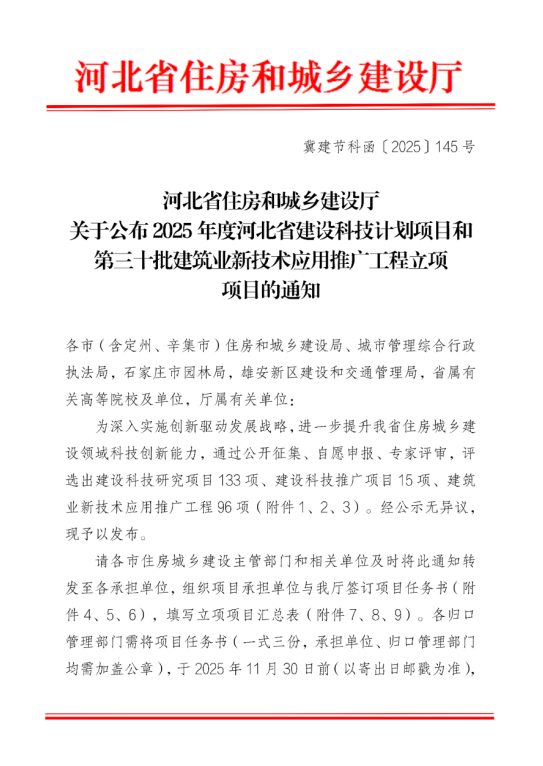 近日,河北省住房和城鄉(xiāng)建設(shè)廳公布2025年度河北省第三十批建筑業(yè)新技術(shù)應(yīng)用推廣工程立項項目名單,渤海公司河北保定綜合管廊項目成功入選。