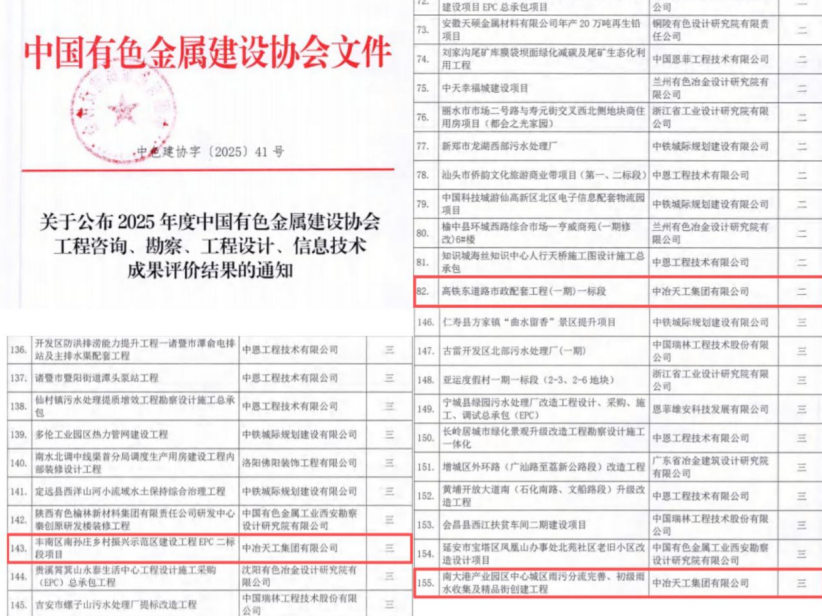 近日,中國有色金屬建設(shè)協(xié)會正式揭曉2025年度中國有色金屬建設(shè)行業(yè)優(yōu)秀工程咨詢、勘察、設(shè)計成果獎評選結(jié)果。中冶天工憑借卓越的創(chuàng)新設(shè)計能力,取得一項二等獎和兩項三等獎的優(yōu)異成績。本次獲獎充分展現(xiàn)了中冶天工在規(guī)劃設(shè)計領(lǐng)域的技術(shù)實力和綜合能力,通過精品工程的示范效應(yīng),為企業(yè)實現(xiàn)高質(zhì)量發(fā)展奠定了堅實的業(yè)績基礎(chǔ)、打造了品牌優(yōu)勢。