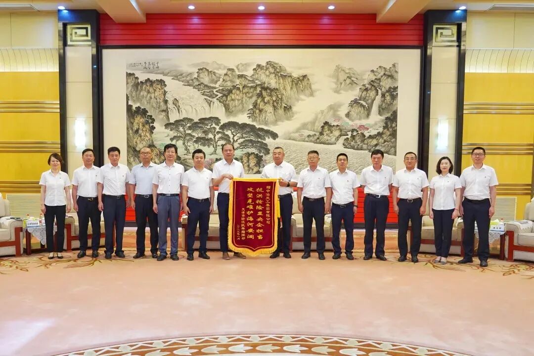 天津市副市長(zhǎng)范少軍代表天津市防汛抗旱指揮部向中冶天工頒發(fā)“抗洪搶險(xiǎn)顯央企擔(dān)當(dāng),攻堅(jiān)克難護(hù)海河安瀾”錦旗