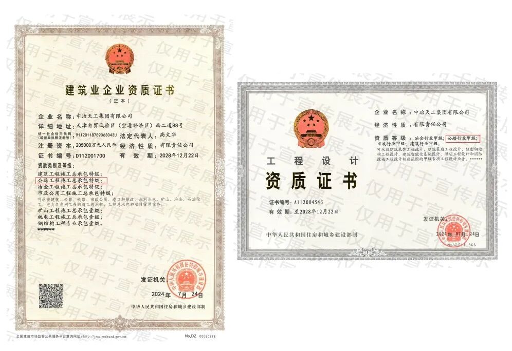 中冶天工特級(jí)和甲級(jí)資質(zhì)
