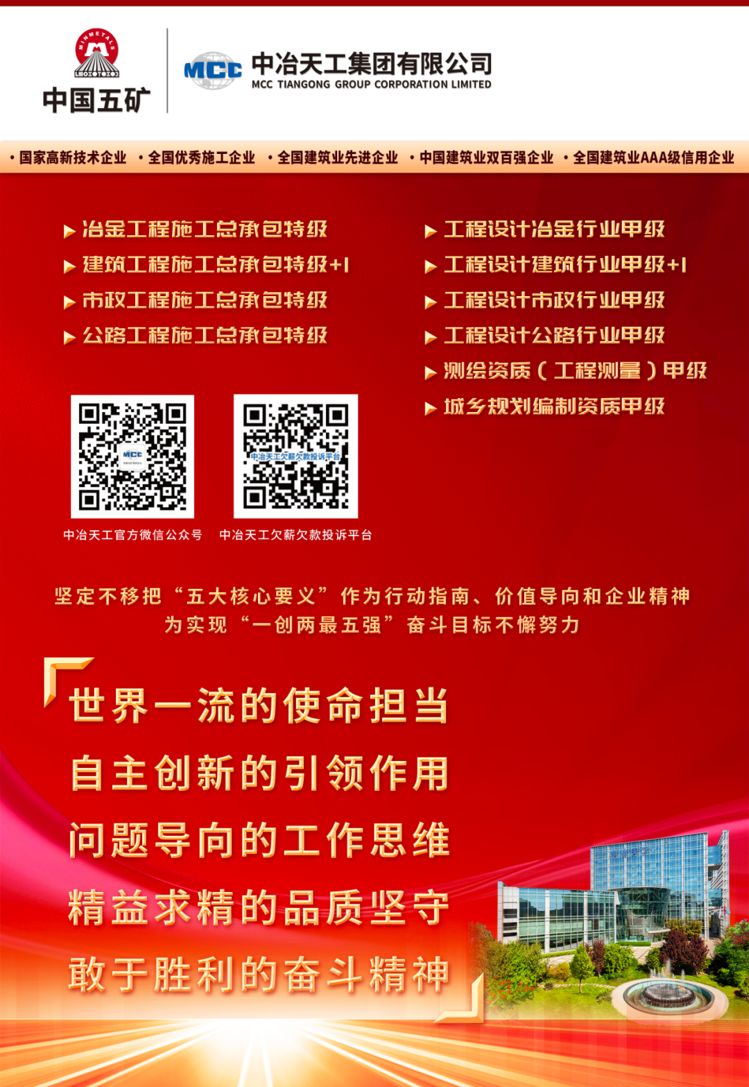 “十四五”時(shí)期,作為我國(guó)社會(huì)主義現(xiàn)代化建設(shè)新征程中的關(guān)鍵一環(huán),無疑承載著承前啟后、繼往開來的重要使命。這一階段不僅標(biāo)志著偉大祖國(guó)站在新的歷史坐標(biāo)上,更是以全局視野和戰(zhàn)略眼光,系統(tǒng)性地擘畫并精細(xì)部署了未來五年經(jīng)濟(jì)社會(huì)發(fā)展的宏偉藍(lán)圖。在這波瀾壯闊的時(shí)代背景下,中冶天工緊密契合國(guó)家發(fā)展的強(qiáng)勁脈搏,堅(jiān)定不移與國(guó)家戰(zhàn)略同頻共振,矢志不渝投身于推動(dòng)國(guó)家經(jīng)濟(jì)社會(huì)高質(zhì)量發(fā)展的偉大實(shí)踐中,以扎實(shí)的工作和顯著的業(yè)績(jī),推動(dòng)高質(zhì)量發(fā)展邁上新臺(tái)階,以優(yōu)異成績(jī)慶祝中國(guó)五礦集團(tuán)有限公司成立75周年。