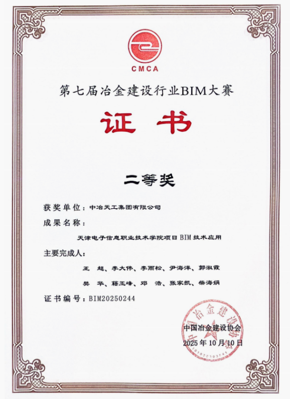 近日,華南公司承建的天津電子信息職業(yè)技術(shù)學(xué)院產(chǎn)教融合實訓(xùn)基地項目,憑借出色的BIM技術(shù)應(yīng)用成果,榮獲中國冶金建設(shè)協(xié)會第七屆冶金建設(shè)行業(yè)BIM大賽二等獎。